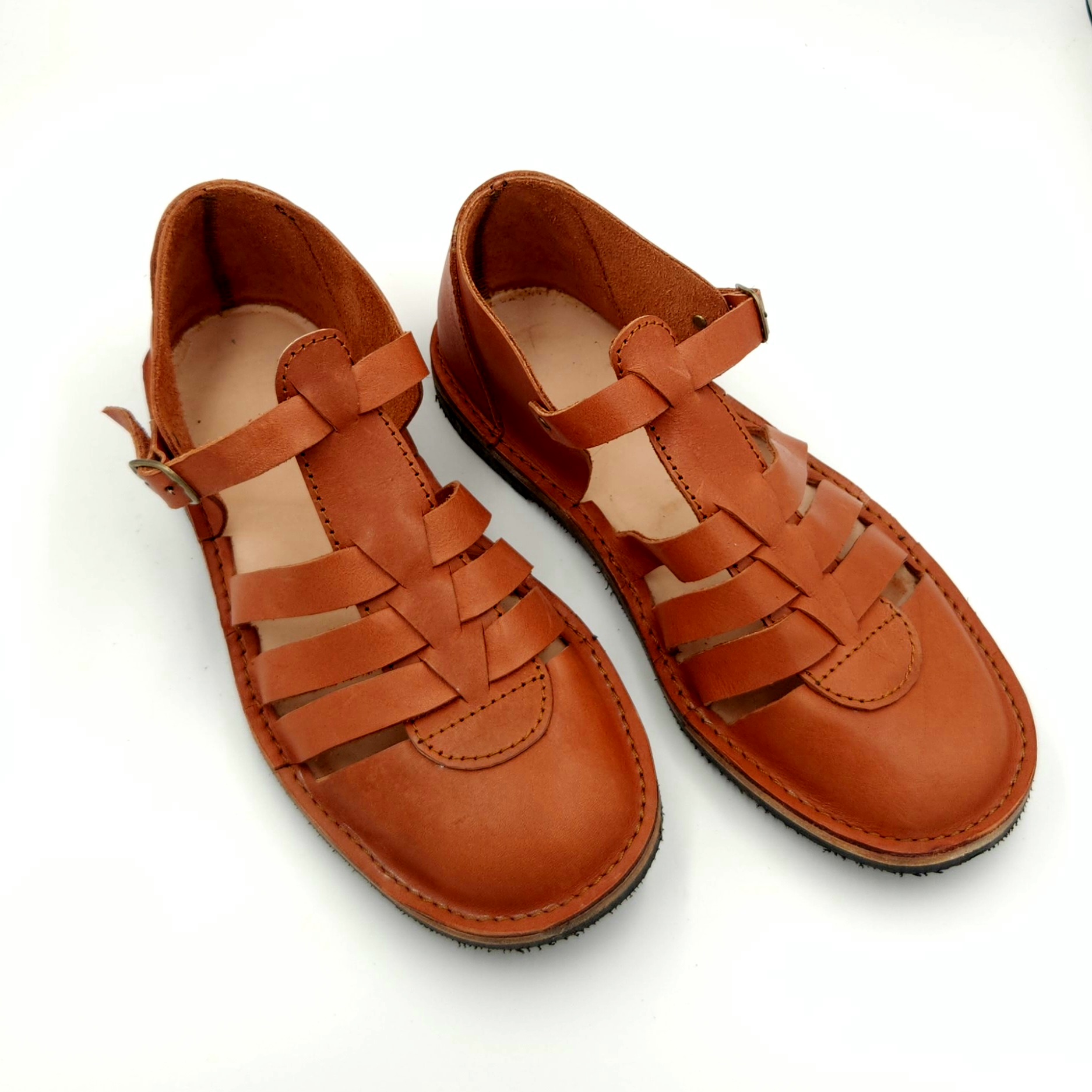 Volgrein leer Sandale met ‘n toe toon en toe hak.