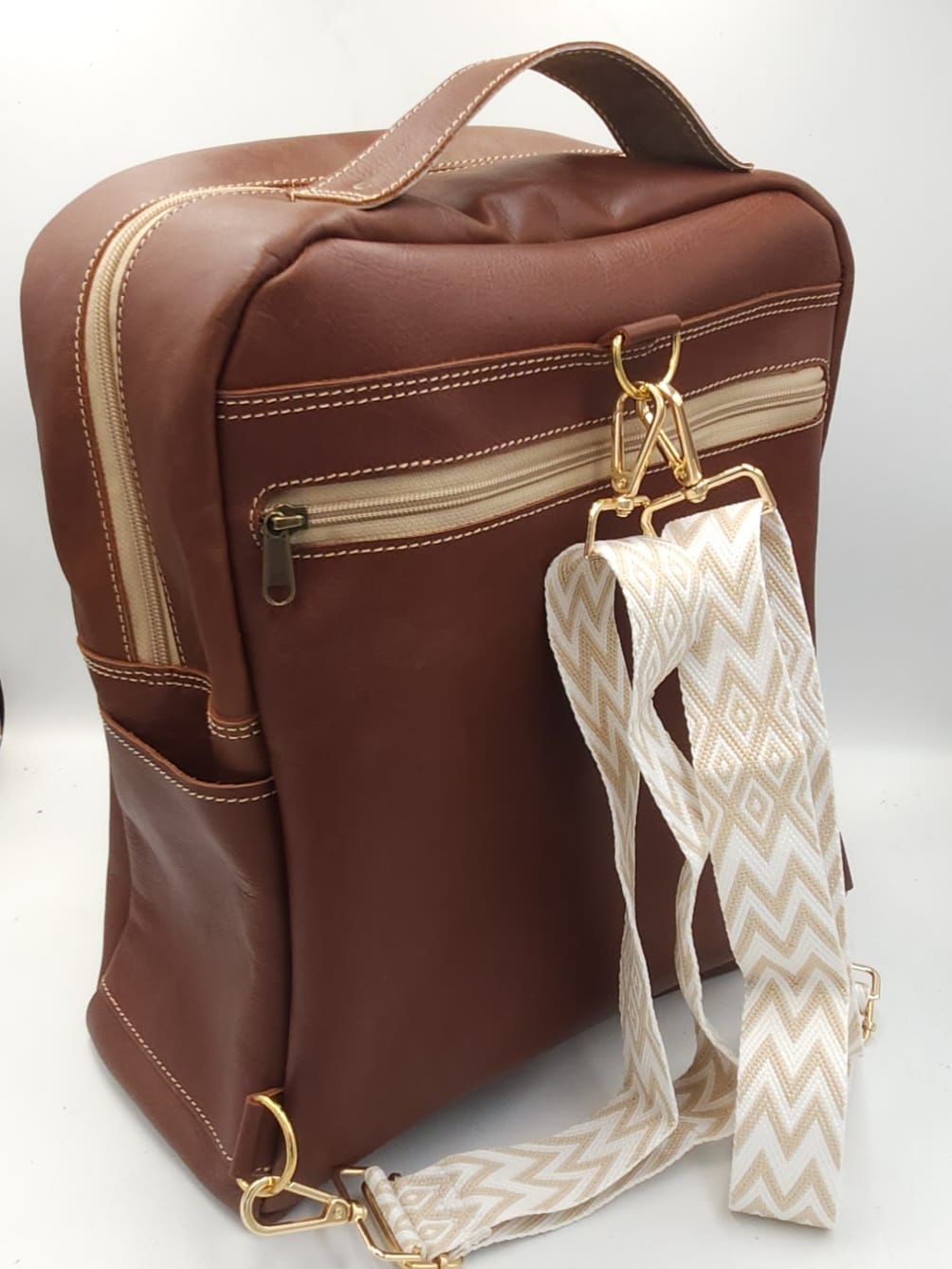 Versatile, functional and practical backpack available in Toffee, Coffee & Tobacco colors.
