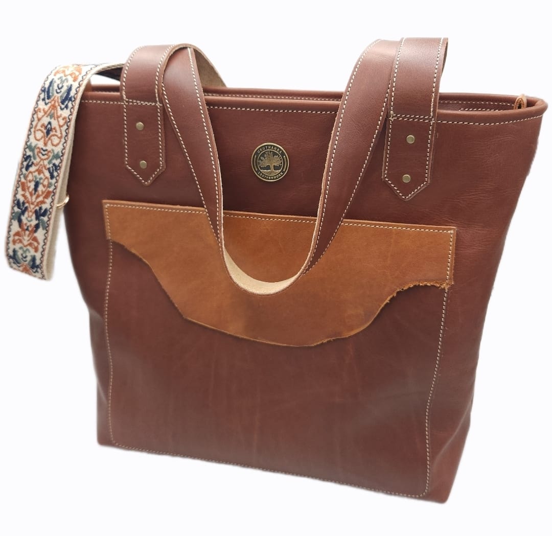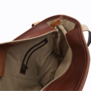 Egte beesleer sak wat toe zip, gevoering met zipsak binne vir jou parfuum, glipsak voor met magneet clip vir selfoon, sleutels of selfs n dagboek, zipsak agter vir notas en skryfbehoeftes. Band ingesluit