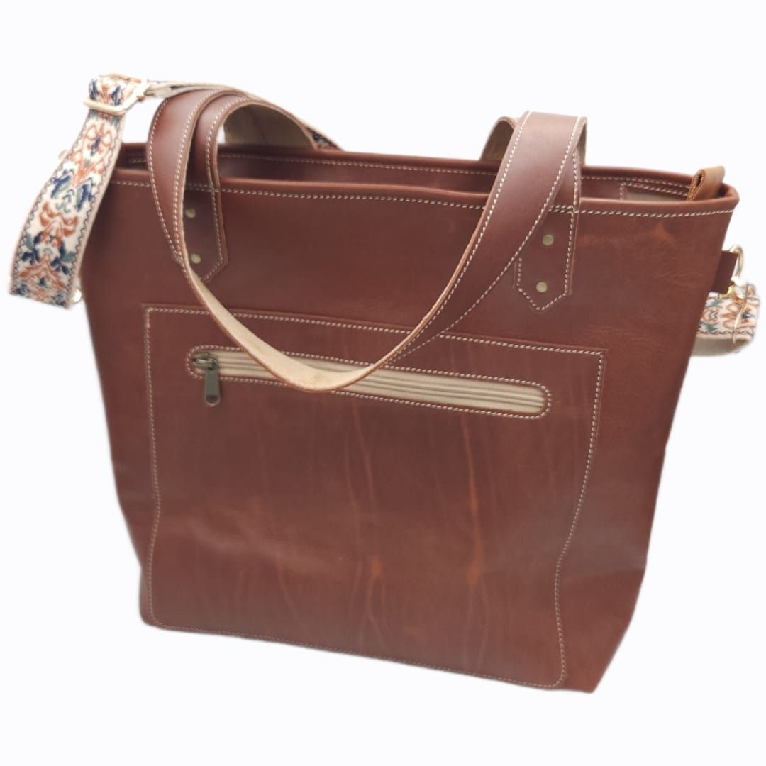 Genuine leather shoulder bag that zips closed, lined with an inner zip pocket for your perfume, a front slip pocket with a magnetic clip for your cellphone, keys, or even a journal, and a back zip pocket for notes and stationery. Strap included
