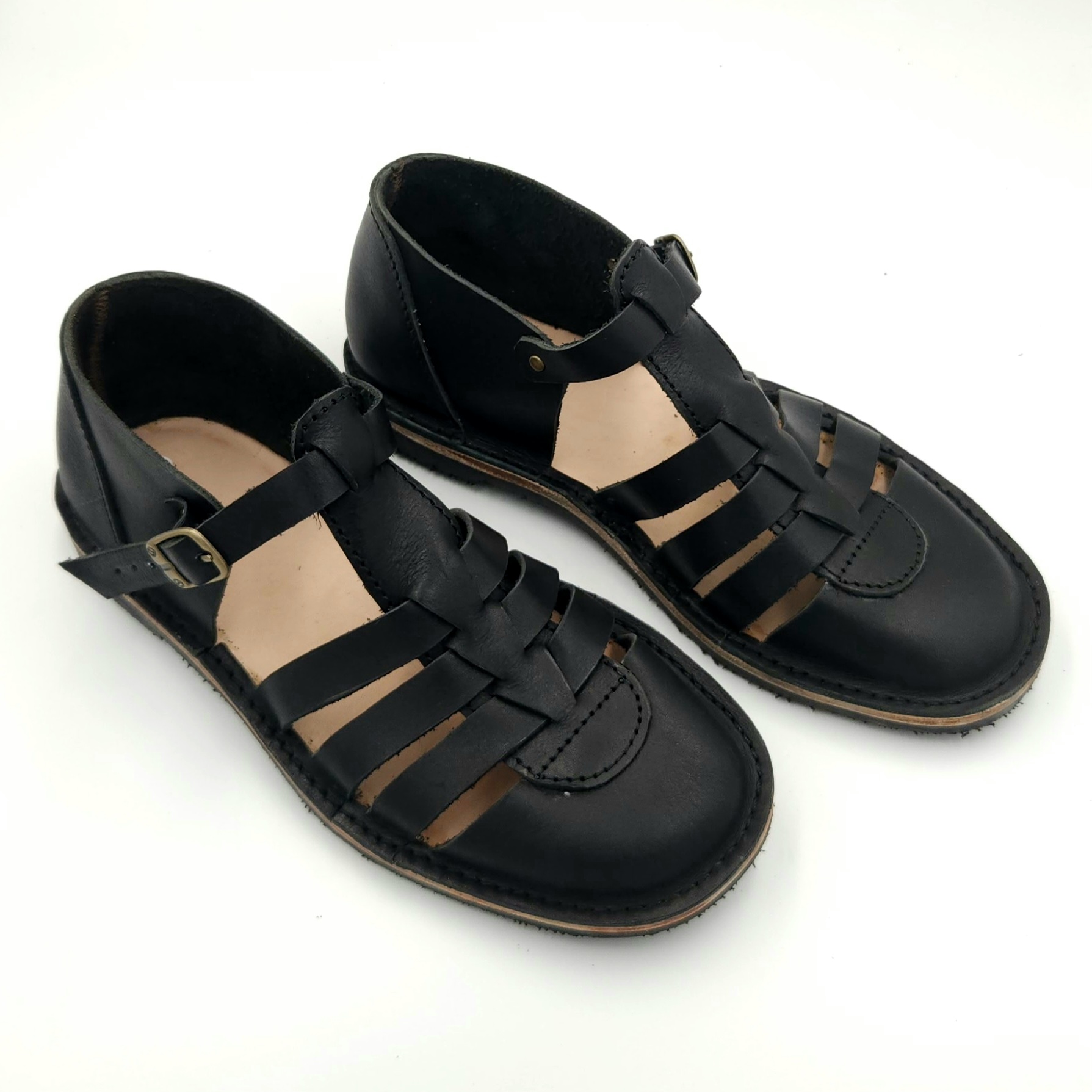 Volgrein leer Sandale met ‘n toe toon en toe hak.