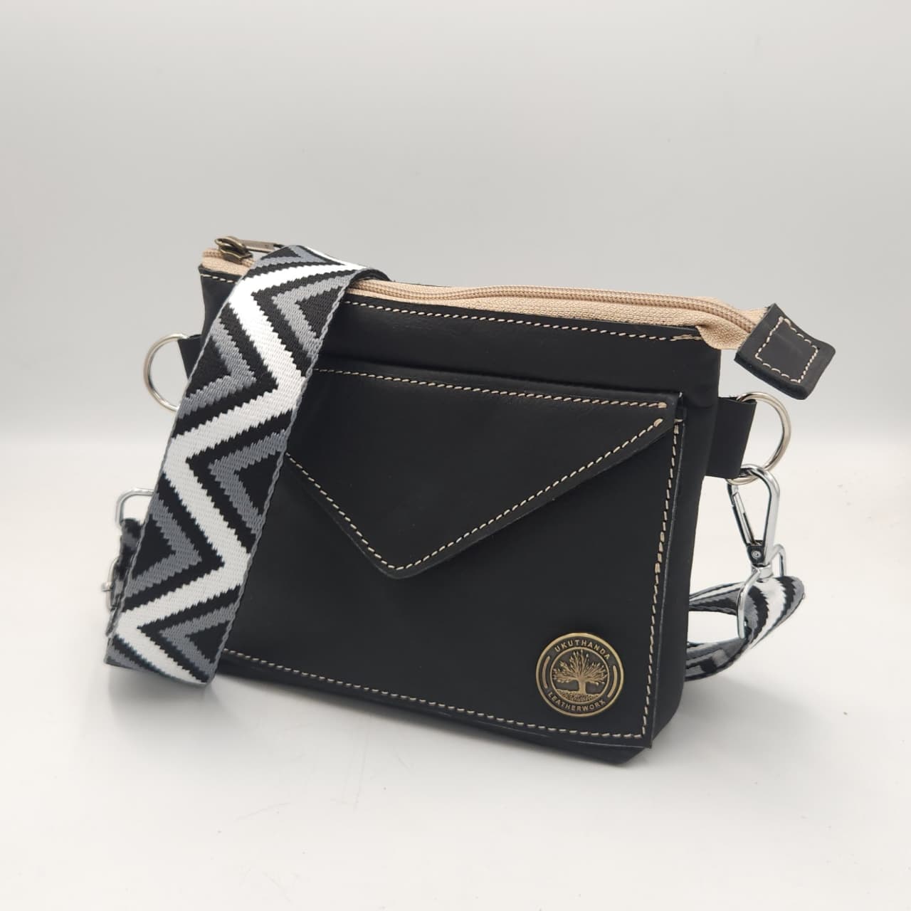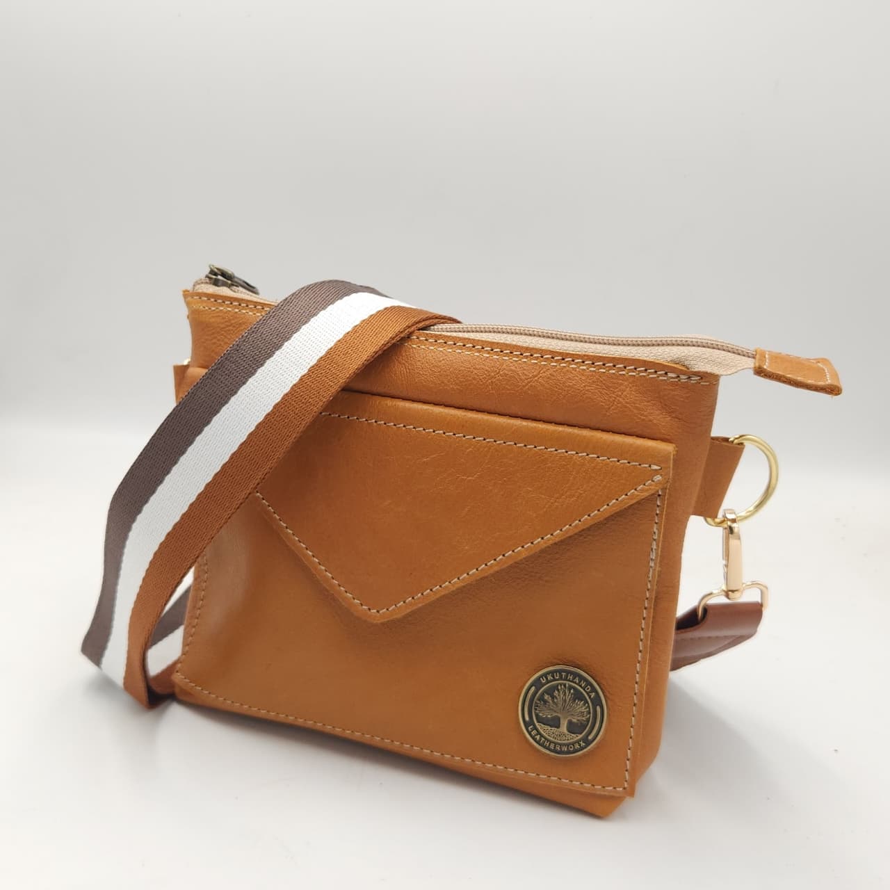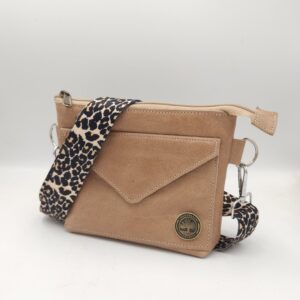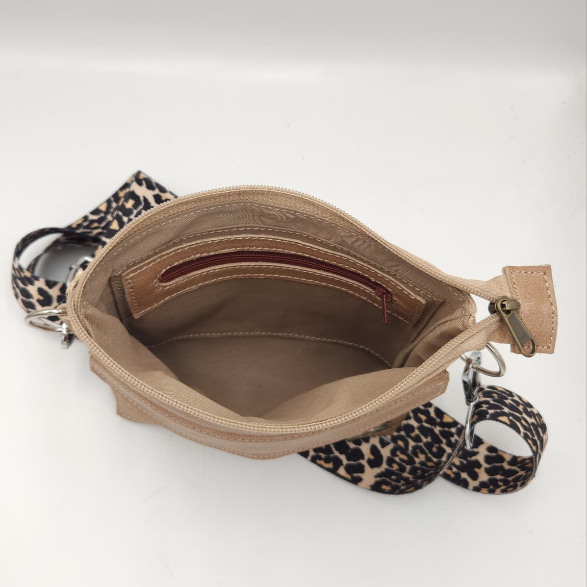 Crossbody leather bag, lined, with zipper bag inside and front pouch with magnetic clip